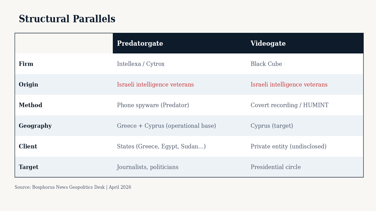 Predatorgate and Videogate are not parallel scandals that happen to share a region. They are connected outputs of the same private intelligence market, built by veterans of the same Israeli intelligence community, operating through methods shaped in the same institutional culture and protected by the same regulatory vacuum.