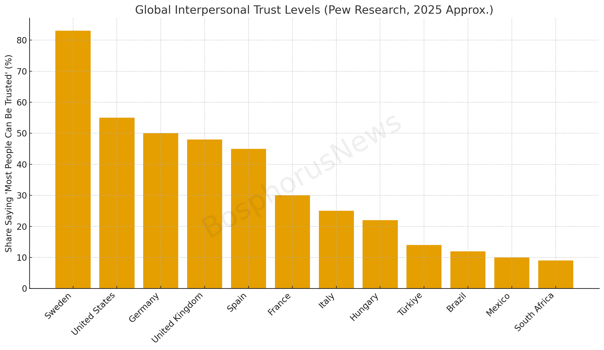 The Pew report, based on surveys in more than two dozen countries in early 2025, asked respondents whether “most people can be trusted” or whether “you can’t be too careful in dealing with others.” While countries such as Sweden and the Netherlands recorded some of the highest levels of trust, Türkiye’s figures were notably lower, positioning it closer to nations with more cautious public attitudes toward social trust.