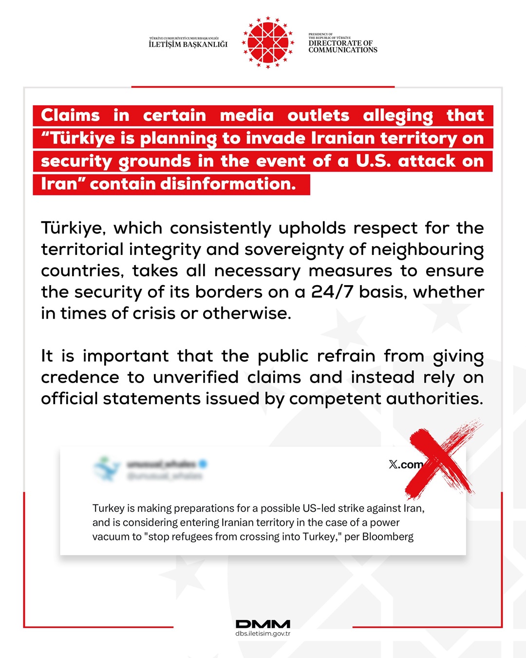 Turkey’s Directorate of Communications has also pushed back on the more expansive versions of that narrative. In a statement carried by its Disinformation Combat Centre, it rejected claims that Türkiye was planning to “occupy” Iranian territory on security grounds, while stressing respect for neighbours’ sovereignty and the need to follow official statements.