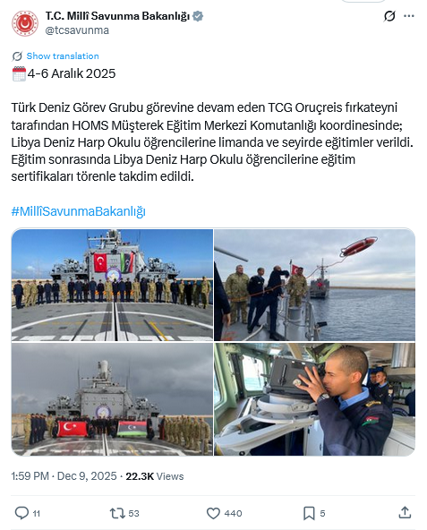 Against this backdrop, the Turkish frigate’s training mission is likely to be interpreted not only as a routine military cooperation activity but also as a symbolic reaffirmation of Türkiye’s commitment to its agreements and partnerships in North Africa.